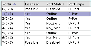 | Online | Port is licenced and has a connection to an HBA |