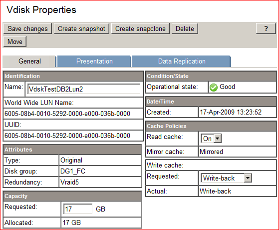 - Select Storage array, Select vdisk.