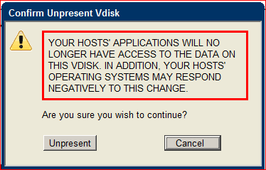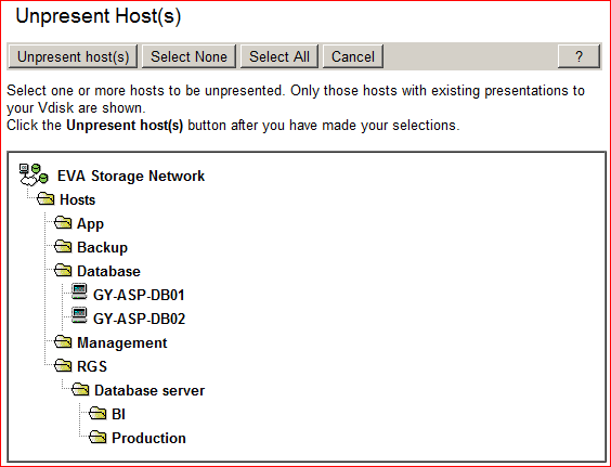 Select the hosts to Unpresent to and click Unpresent hosts(s). You will be prompted several times about the severity of making a mistake.