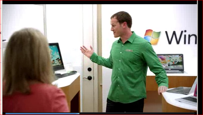 Wow! Look at the huge choice of computers on display!! Sadly they are all windows PC's so the idea of a shop where you have a real choice of the most important part, the OS, doesn't apply. After much cooing, the victim chooses a pretty looking laptop. Unfortunately, the victim always seems to be a PC user and doesn't want to buy an Apple Mac.
