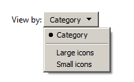 The category option looks promising until you see what it offers. Still it's going to be really useful to decide if I want to see large or small icons when I need to change an important parameter but can't find the place to do it. Network Settings for an interface is a good case in point. If I want to set an additional ipaddress, or configure static addressing, I don't want to have to go to Network and Sharing Center (spelt wrongly for the UK, so Localisation doesn't work properly either) and guess which silly icon to click. What's Sharing to do with NIC settings anyway? As I said, it's a mess.