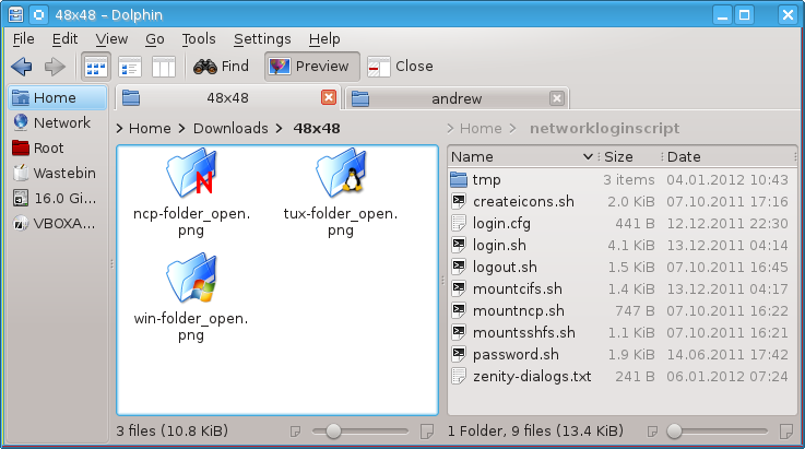 All this is good, but it gets better. Remember how long it took for internet explorer to implement tabs for Internet browsing after all the other browsers had implemented them and how useful they are? Well it's the old story over again. KDE's file browser, Dolphin, supports tabs in it's file view. Not only this, but you can also split either a whole window or one or more tabs and configure each split side individually.